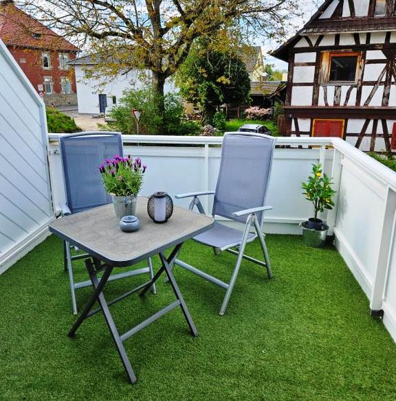 Da sich die Wohnung im 1. OG befindet ist sie nicht barrierefrei. Das Studio ist über eine Raumspartreppe zu erreichen. Dies ist eine Nichtraucherwohnung – aber es gibt ja den Balkon. Haustiere sind nicht erlaubt.